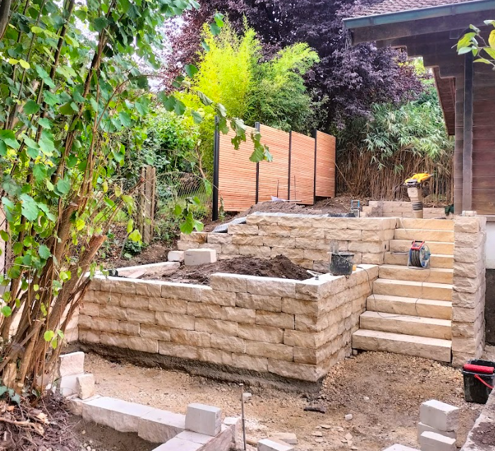 Mauern für Terrasseneinfassungen, Grenzeinfriedungen, gestalterische Sitzplätze, Hochbeete und Lichthöfe