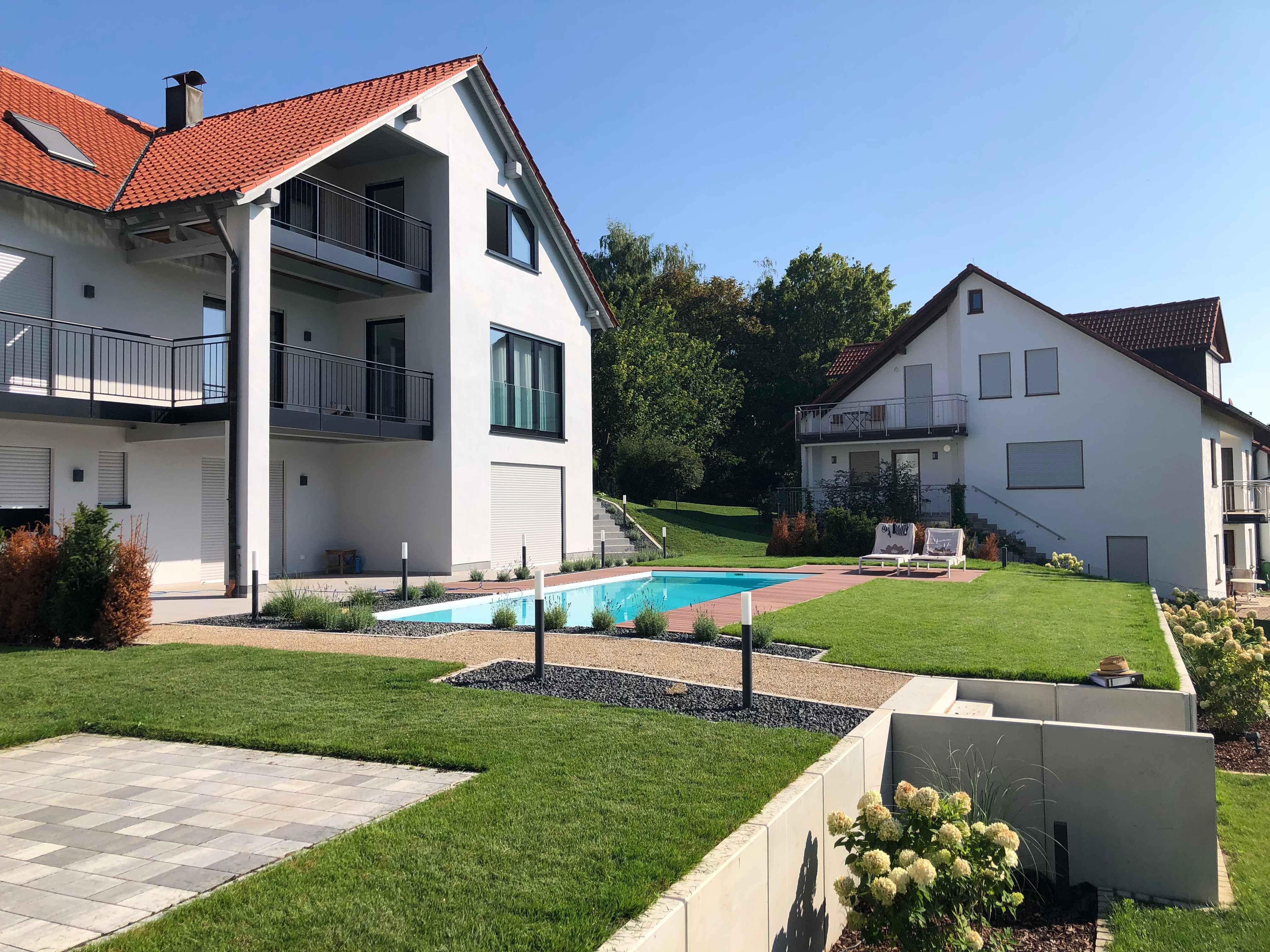 Mauern als Terrasseneinfassung, Lichthöfe, Hochbeete