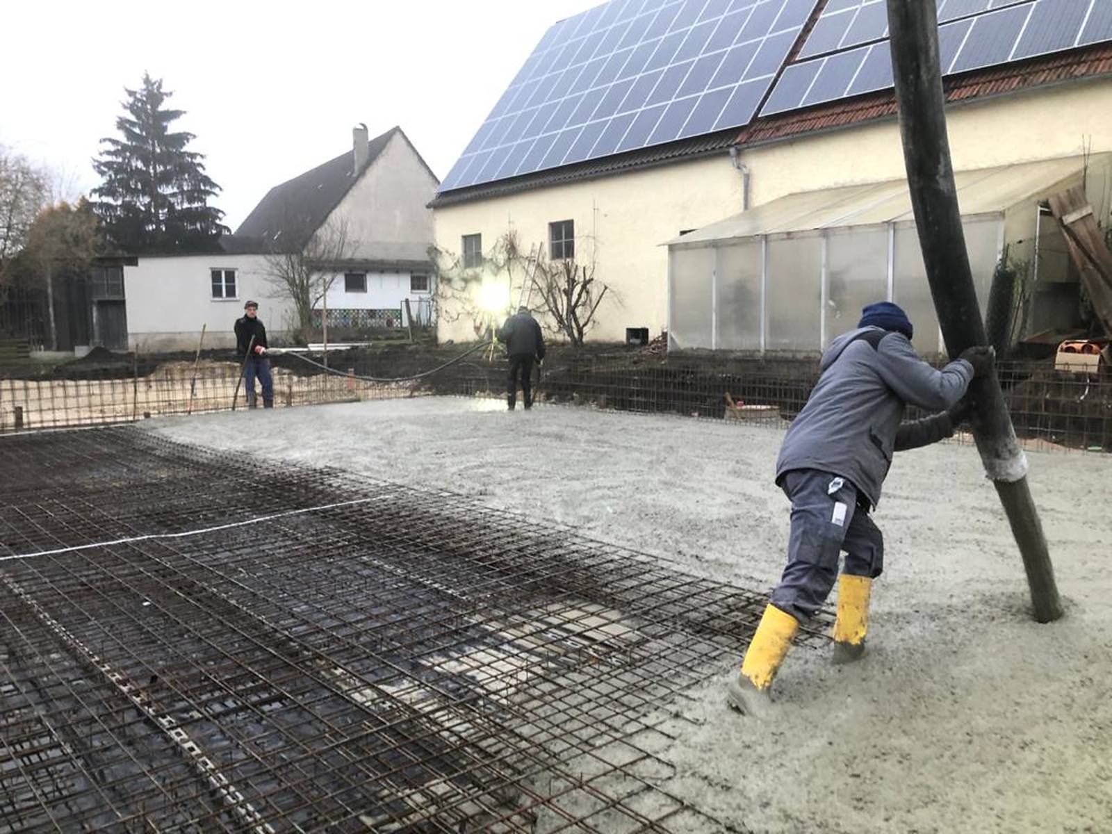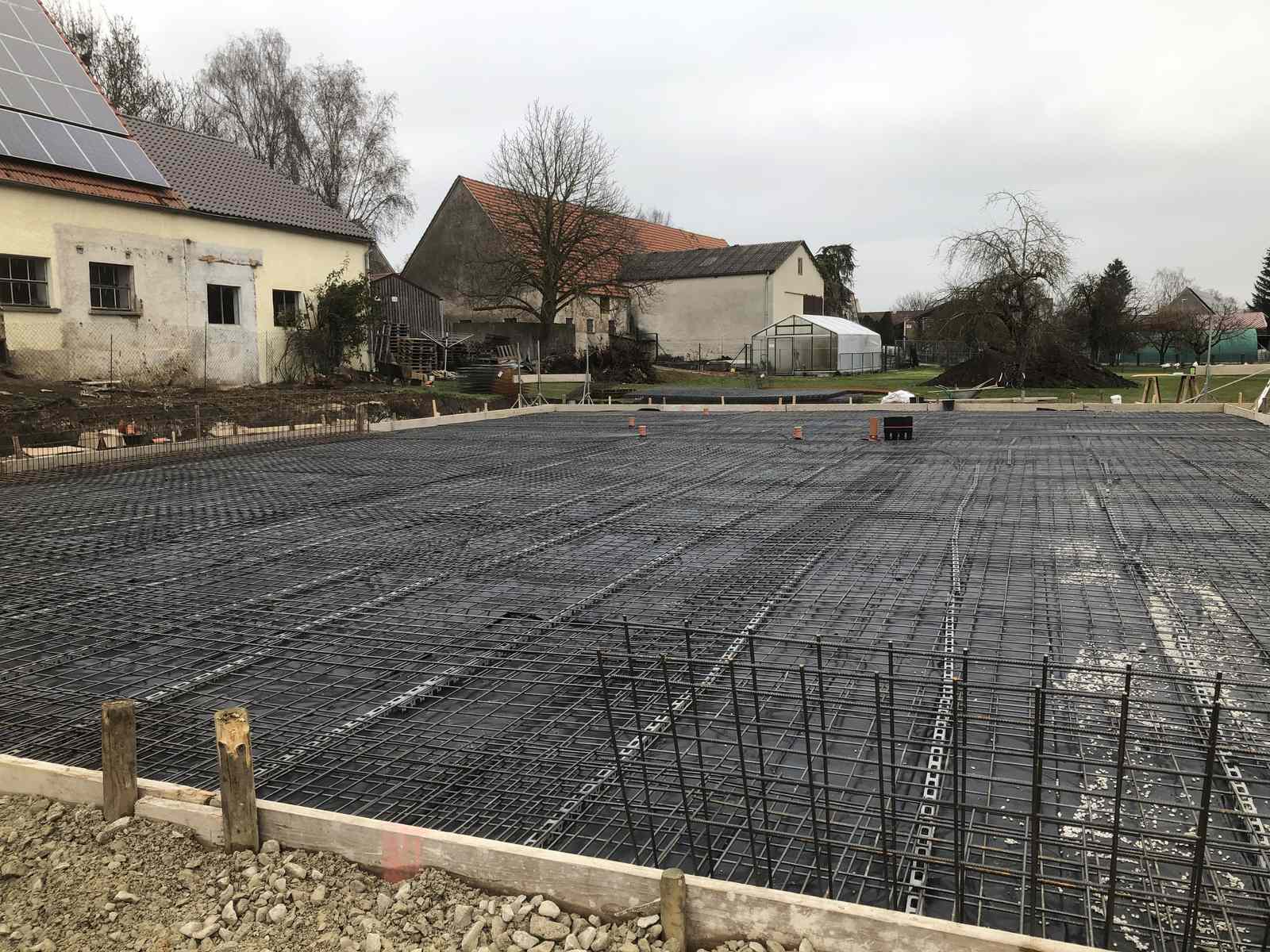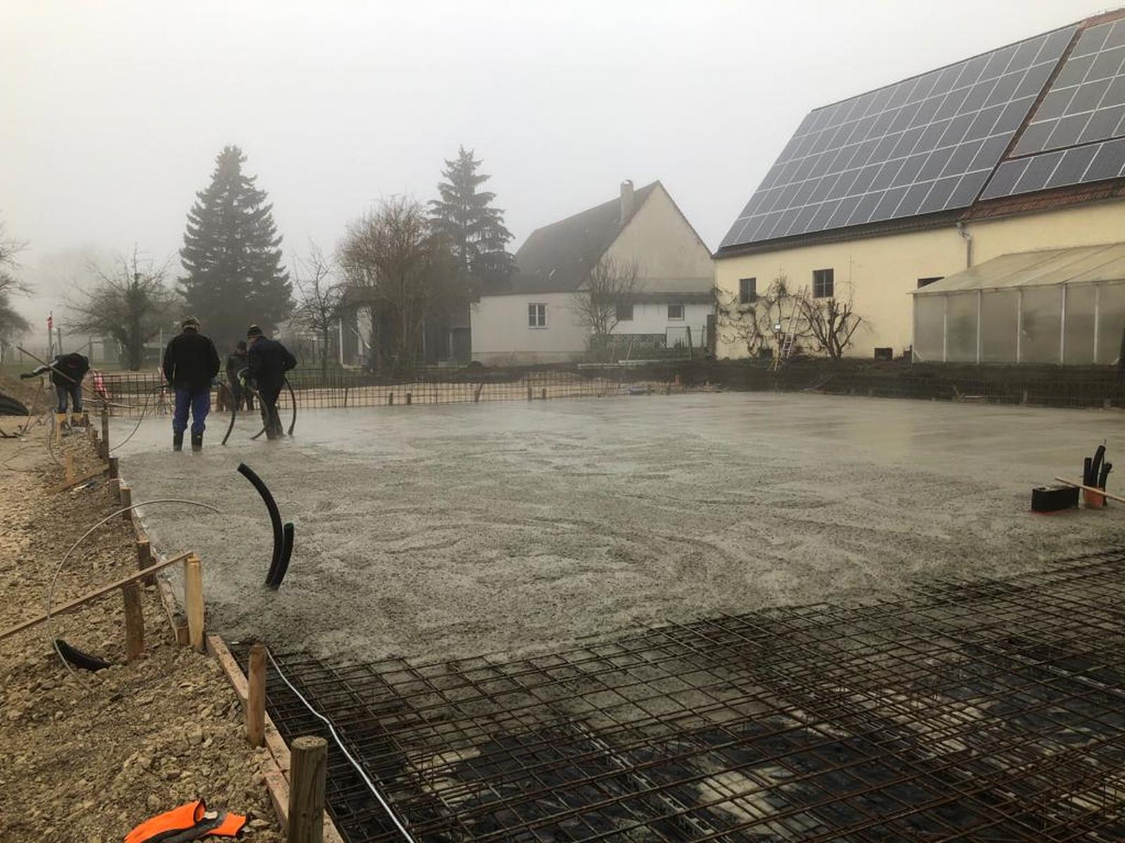 Kurz vor Weihnachten konnte die Bodenplatte für das zukünftige Büro- und Hallengebäude noch fertig gestellt werden.