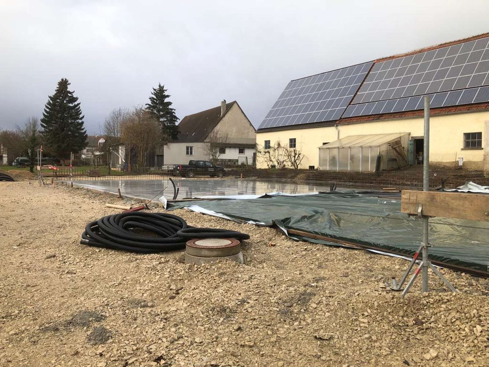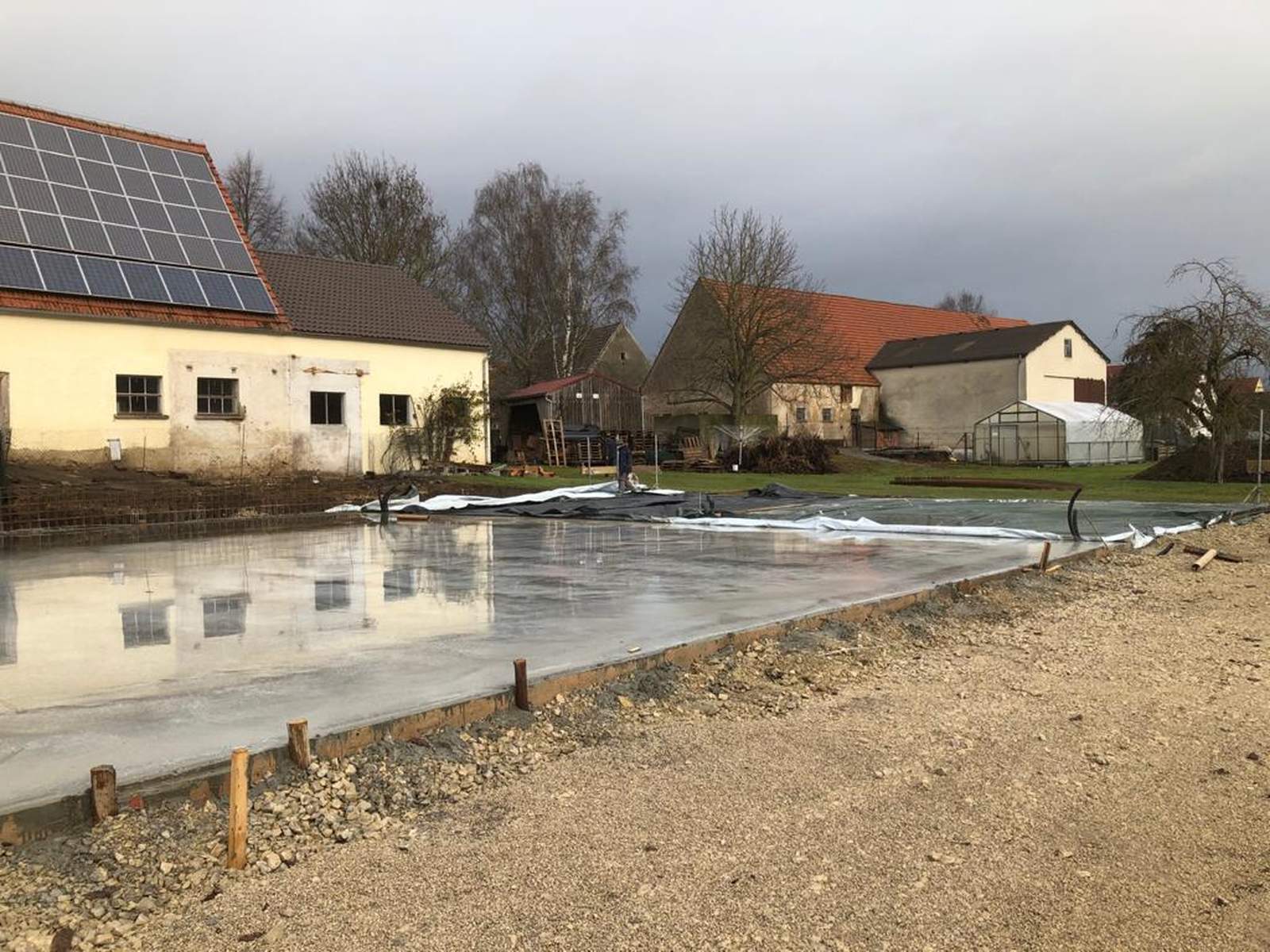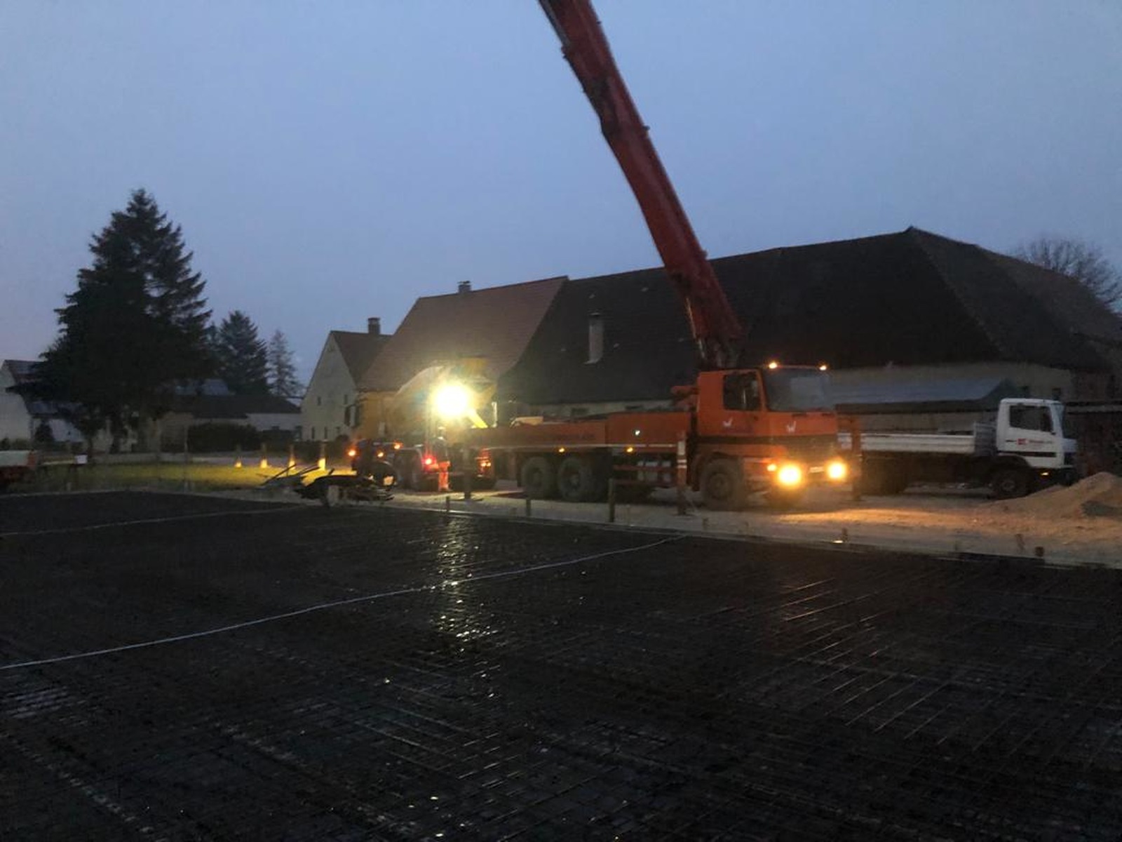 Kurz vor Weihnachten konnte die Bodenplatte für das zukünftige Büro- und Hallengebäude noch fertig gestellt werden.